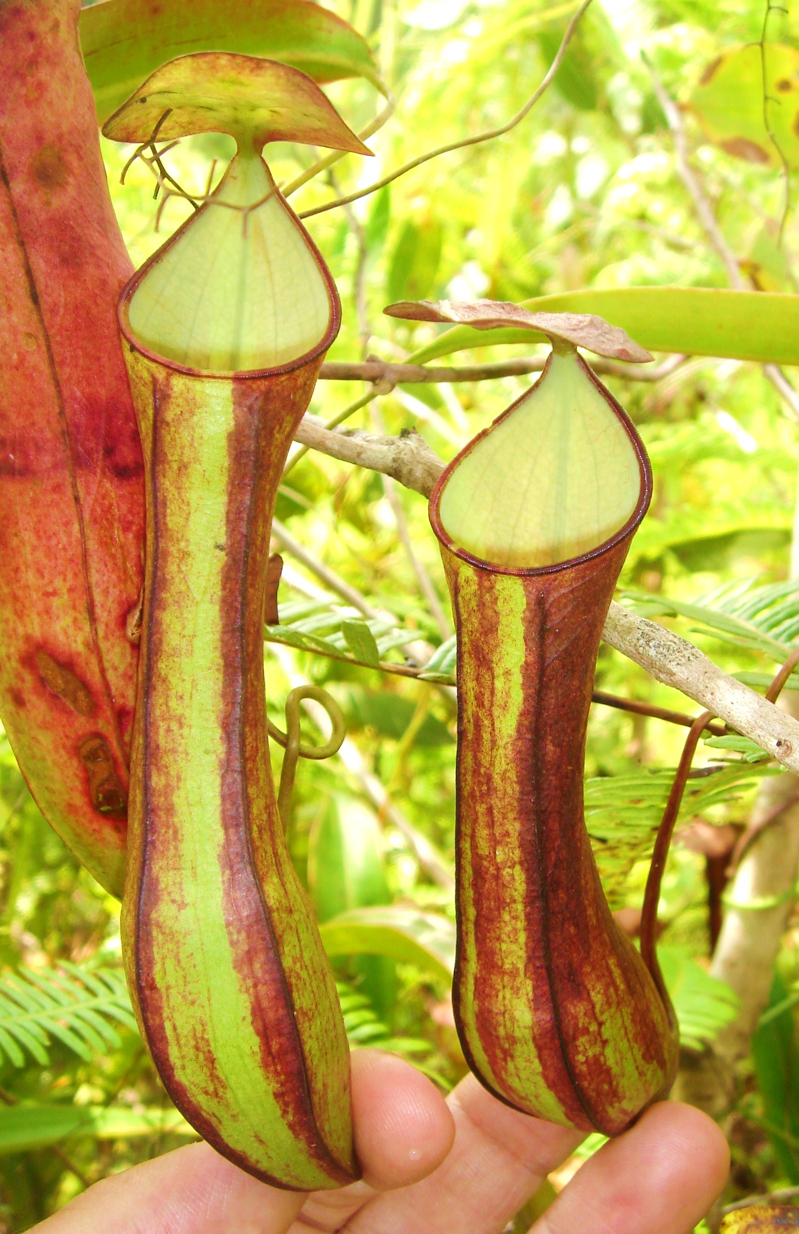 BE3074 Sex: single clone. Origin: Brunei, Borneo. Notes: dark purple pitchers, nicknamed "nigropurpurea" (an old varietal name, now considered just a synonym of the species), previously sold as BE0124, photo by François Mey. BE3072 Sex: single clone. Origin: Notes: this is the cultivar 'Nighttime Regal', which is actually N. gracilis x northiana. BE3073 Sex: batch. Origin: Notes: pink form, batch of 6 clones. BE3075 Sex: Origin: Jemalung, Johor, Malaysia. Notes: BE4611 Sex: single clone. Origin: Notes: dark form, selected from BE4060. BE4060 Sex: batch. Origin: Notes: assorted clones. N214, N221, N222 Sex: Origin: Jemalung, Johor, Malaysia. Notes: N219, N220, N224 Sex: Origin: Mersing, Johor, Malaysia. Notes: NE11B2 Sex: Origin: Notes: green form. NE11B1 Sex: Origin: Bau, Borneo, Malaysia. Notes: purple form. NEP23 Sex: batch. Origin: Notes: 3 clones, one from BE, one from Germany and one from Leiden Botanical Garden. EPd Sex: Origin: Brunei, Borneo. Notes: squat form, germinated from wild collected seeds. EPe Sex: Origin: Singapore. Notes: brown form. MC6 Sex: single clone. Origin: Kuchè, Narathiwat, Thailand. Notes: MC says: "When in 2008 I visited this large colony near Kuchè, I had to choose one specimen to take cuttings of. As N. mirabilis was also present, I didn't collect seeds. I took a cutting of this particular plant because of the nice maroon stripes of its upper pitchers". Photo by MC. |