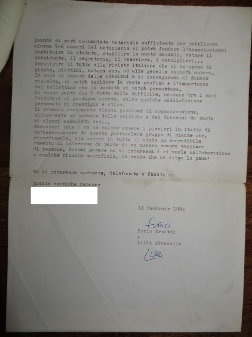 Questa è un'epoca oscura. Niente di scritto, solo ricordi a macchia di leopardo. Le piante carnivore in commercio nei vivai sono prodotte dalla ditta olandese Cresco. Sono vendute in vasetti di terracotta riempiti con un composto marrone che include strani "semini", identificati in seguito come pule di riso. E' l'antica (e penso economica) versione di torba e perlite. Il 99% del mercato è Dionaea, già difficile a trovarsi, ma sappiamo che vengono prodotte anche D. capensis, S. purpurea e S. alata (la varietà aumenta col tempo). Un'altra opzione sono le aziende che vendono piante per corrispondenza: Intermail Flora e Stassen. I loro cataloghi hanno foto che fanno sbavare e includono Dionaea, Darlingtonia, S. purpurea e S. leucophylla. L'Intermail Flora spedisce vasetti di plastica incellofanati, il cui contenuto è nascosto da una foto della pianta che funge da coperchio. All'interno c'è un composto di sfagno puro e un rizoma con le foglie tagliate a zero. Il rizoma spesso è già morto. La Stassen spedisce essenzialmente le piante di Cresco, stesso vaso, stesso composto, stessa dimensione. Le fonti d'informazione scritta sono poche e di bassa qualità. Per la maggior parte, libri di giardinaggio. Ogni mese vado in libreria col papà, guardo nell'indice se c'è qualche pianta carnivora, e se c'è compro il libro perché evidentemente è di qualità superiore. Quello che c'è scritto su questi libri a volte è valido e a volte è una barzelletta, ma sono cose che capirò molti anni dopo. Per il Marcello del 1985, sono tutte regole sacrosante perché sono stampate su carta. Alcuni di questi libri sono datati, e tra i composti consigliati compaiono la fibra di Osmunda, la terra di Erica e il carbone di legna. Non sto qui a spiegarvi di cosa si tratta, vi dico solo che sono materiali ereditati dall'epoca vittoriana. Quando cerco nei vivai la fibra di Osmunda e la terra di Erica, i proprietari mi chiedono di parlare italiano o mi dicono che la fibra di Osmunda è terminata ma hanno ancora veleno di rospo e sangue di vergine. Un'altra fonte d'informazione è costituita dalle riviste di giardinaggio, con articoli occasionali sulle carnivore. Ecco perché l'intero servizio dedicato su Gardenia 16 (agosto 1985) diventa una guida di primo piano. Un paio di vecchie foto da Gardenia, anche se forse non del numero 16: foto, foto. Una strana cosa di quell'articolo: diceva che queste piante non vanno nebulizzate, e allora mi guardo bene dal farlo. Penso che questa ennesima leggenda metropolitana derivasse dal fatto che nebulizzare fa chiudere le trappole delle dionee e lava via la colla delle drosere. Ma l'articolo non parlava di generi o motivi, quindi non nebulizzavo neanche le sarracenie. I primi tentativi sono tristi come le prime fonti d'informazione. Non ho certezze sull'ordine cronologico ma ci provo: - Dionee Intermail Flora, rizoma nudo. Non so come le ho coltivate. Mai prodotto trappole. - S. leucophylla (e/o Darlingtonia?) Intermail Flora, rizoma nudo. Coltivata su calorifero davanti a finestra con tende esposta a sud, in soggiorno. Mai prodotto trappole. - Dionaea comprata a Lugano, forse la prima con le foglie. Coltivata in zona 7 e zona 10. - Dionee Cresco e S. purpurea Stassen. Coltivate in zona 10. - S. purpurea Stassen. Coltivata in boccia di vetro riempita per un terzo con mix Cresco, in soggiorno, a un metro da finestra con tende esposta a sud. - S. alata Cresco trovata per miracolo al mercato rionale da mia madre. Coltivata su un ripiano al centro del soggiorno. - Dionee Cresco. Coltivate in terrario con una lampada al neon, in soggiorno e in zona 10. LUGLIO Momento importante, ricevo una laurea dall'avvocato Agnelli (foto). Il documento attesta che le coltivo da tre mesi, le ho fatte fiorire, le ho impollinate e ho ottenuto i semi. Si trattava di una Dionaea che avevo comprato quando lo stelo fiorale era già comparso. In fondo alla laurea, ci sono i tre cartellini delle piante Cresco coltivate fino a quel momento (foto): Dionaea, S. purpurea e S. alata. Le foto sui cartellini erano solo indicative, le piante in vendita erano molto peggio. Sul retro della laurea c'è la mia growlist scritta a macchina. Non c'è scritto quando è stata compilata, ma sicuramente anni dopo la laurea stessa, quindi viene discussa sotto. A fine mese compio 13 anni. NOVEMBRE Dopo mesi di attesa, arrivano i libri ordinati alla Hoepli. Sono The Carnivorous Plants di F. E. Lloyd (1942) e Carnivorous Plants of the World di J. & P. Pietropaolo (1986). Ora si comincia a fare sul serio. Il libro di Lloyd non parla di coltivazione, solo di biologia. L'autore è fissato con le trappole di Utricularia. Alla fine del libro ci sono piccole immagini in bianco e nero che guardo per ore, studiandone ogni millimetro (foto, foto). Il libro di Pietropaolo mi dà i primi rudimenti di un certo spessore sulla coltivazione. Le foto sono riunite in una sezione a colori al centro del libro, il resto è solo testo e disegni. Credo di aver visto le foto di Heliamphora e Cephalotus per la prima volta sul libro di Lloyd, arrivato poco prima di quello di Pietropaolo. Fino a quel momento, avevo letto una descrizione dei due generi ma non avevo idea del loro aspetto. "Come facevi coi libri se non sapevi l'inglese?". Usavo il vocabolario. DICEMBRE Spinto dall'entusiasmo e dal carico di nuove informazioni, inizio a scrivere il primo libro, che si basa sulla traduzione dei due libri migliori (foto). Il tomo è grosso, ma interrompo i lavori dopo le prime pagine, scrivere tutto a mano mi pesa troppo. Compilo una traduzione molto più lunga sul computer dell'epoca, la stampo, ma col nuovo millennio finisce nel cestino. Mi scrive Giuseppe Misseri (Torino) (lettera). Aveva messo un annuncio su Gardenia per dire che gli era fiorita una D. capensis e che aveva semi da regalare (foto). Non avevo mai avuto una Drosera e gli avevo scritto di corsa. Purtroppo mi risponde che l'hanno contattato decine di persone e i semi sono finiti. Mi arriva 